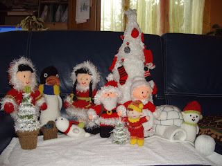-Avec la laine rouge monter 10 m et faire 10 rgs arrêter les m.